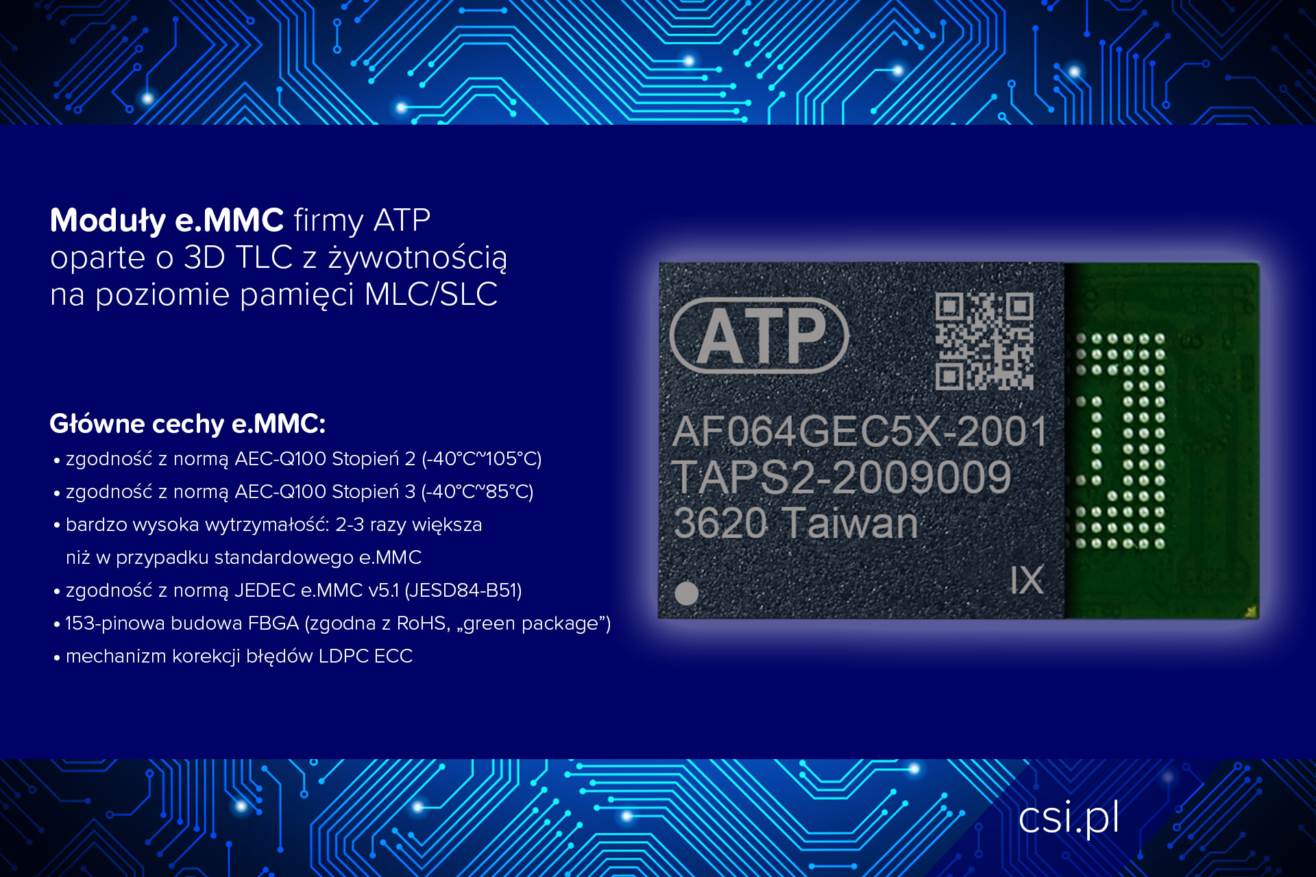 Moduły e.MMC firmy ATP oparte o 3D TLC z żywotnością na poziomie pamięci MLC/SLC