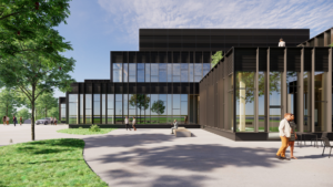 Nowa siedziba powstanie z naturalnych materiałów budowlanych, pozwoli to odzwierciedlić otoczenie jak również w pełni się z nim zintegrować.